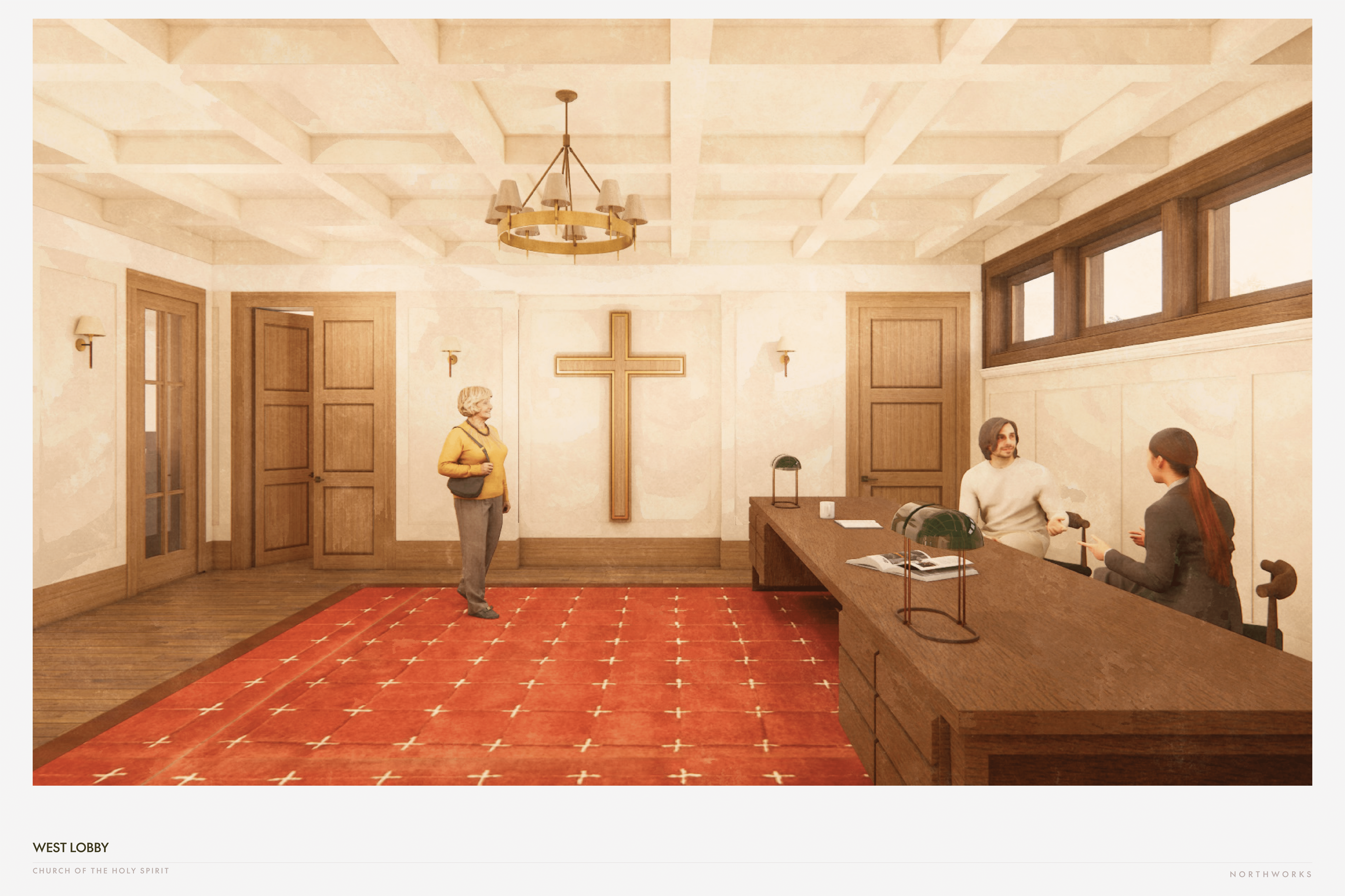 Over six months, the Capital Project Working Group—Father Luke Back, Skip Martin, Robin Zafirovski, and Tom Duckworth—listened to staff, ministries, preschool, and parish leaders. Guided by that feedback and the architect, they shaped plans to: